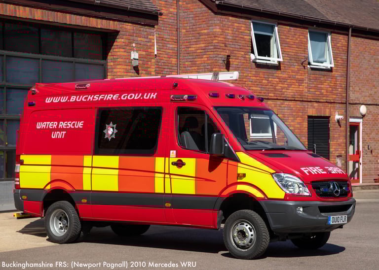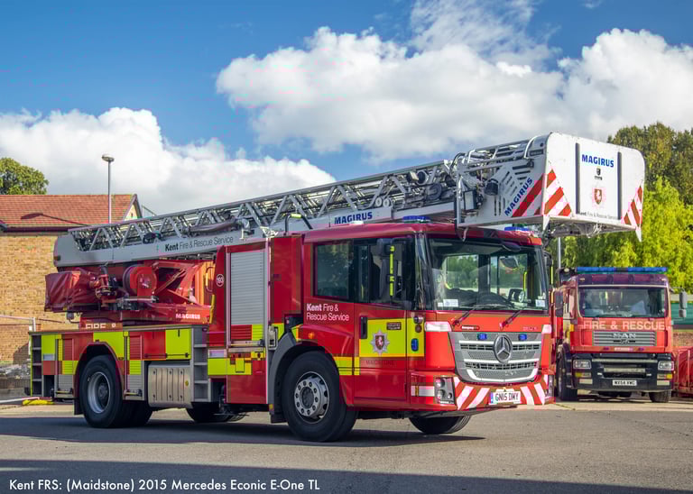 Mercedes-Benz has been manufacturing trucks since 1926, and now part of Daimler Trucks, has become the world's largest manufacturer of commercial vehicles. They have produced fire appliances in Europe since the 1940s and entered the UK market in the 1990s They provide a range of appliance types, from front-line pumps based on the Atego chassis (and favoured by the London Fire Brigade) to a range of special appliances based on various vehicles including the lightweight Sprinter van which serves in many roles to heavier Econic models which are used as a chassis for aerial platforms. The Unimog, with its extreme all-terrain capabilities, also serves with a number of brigades where it is used for off-road rescue and fighting wildfires. Pictured below are a selection of Mercedes appliances from a number of UK brigades.