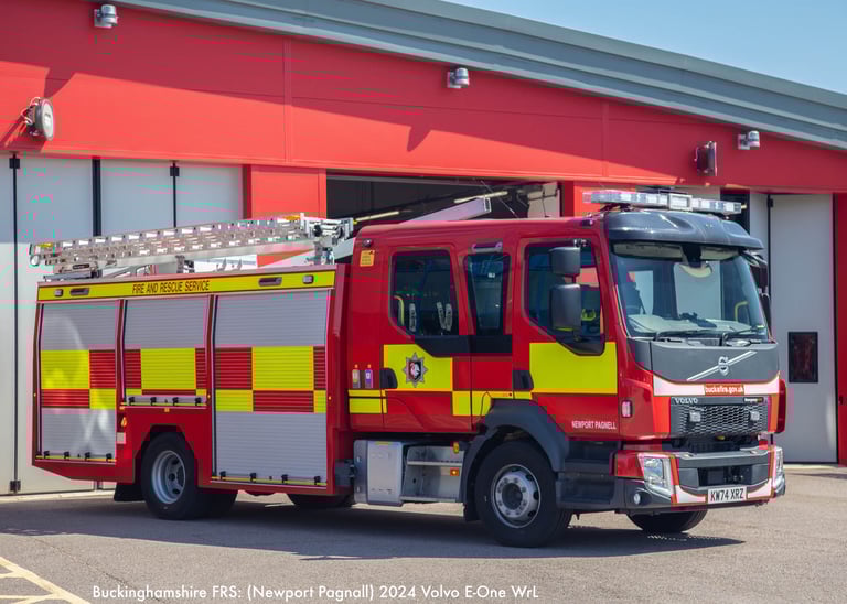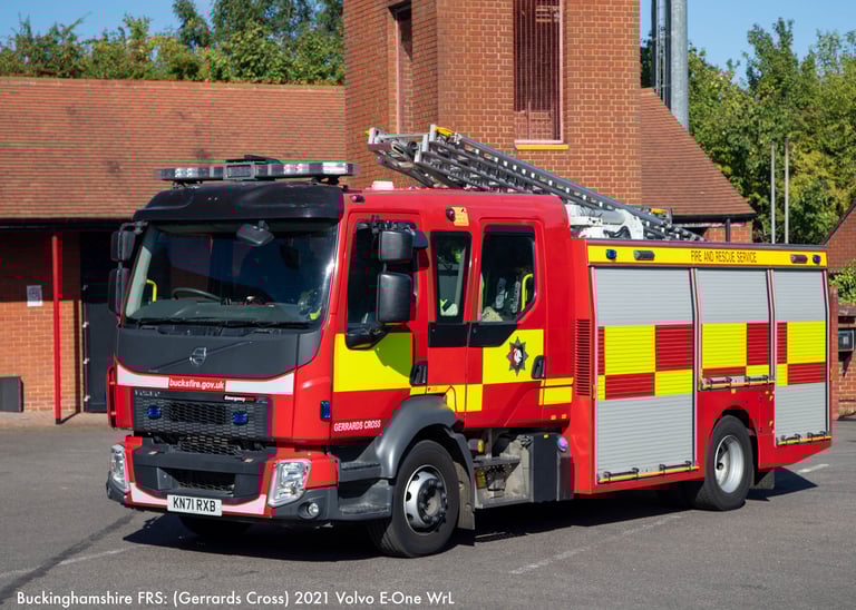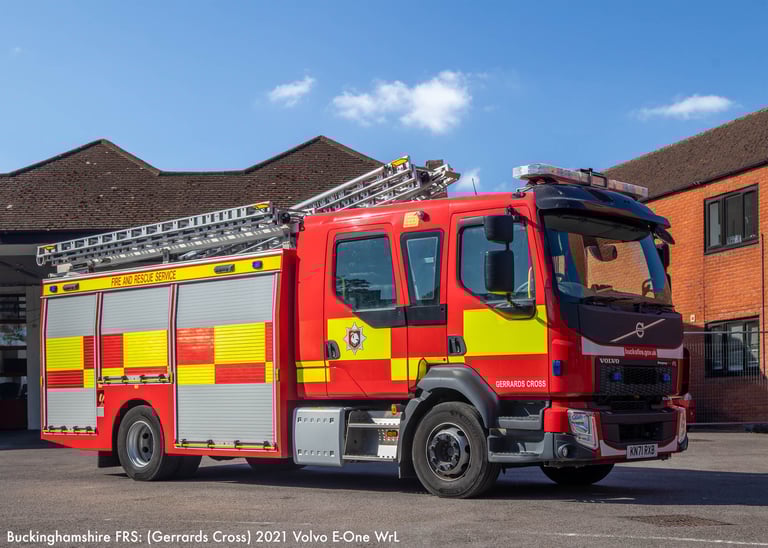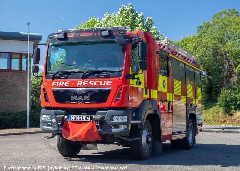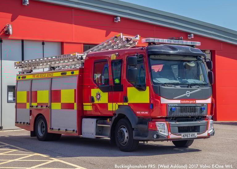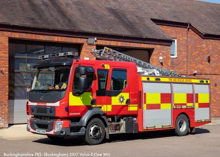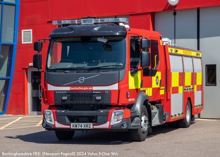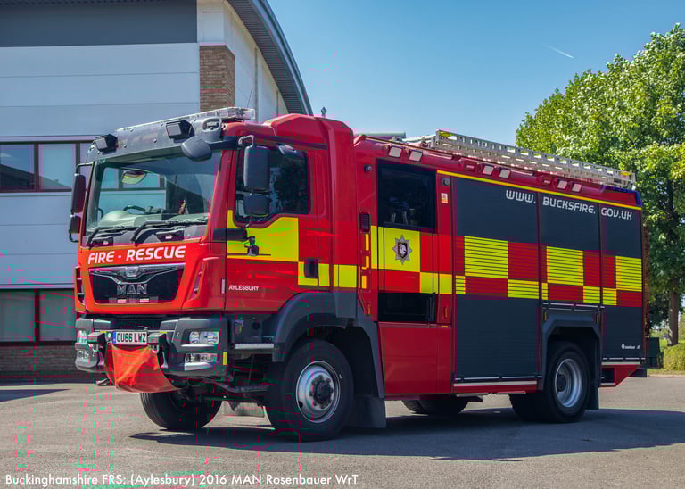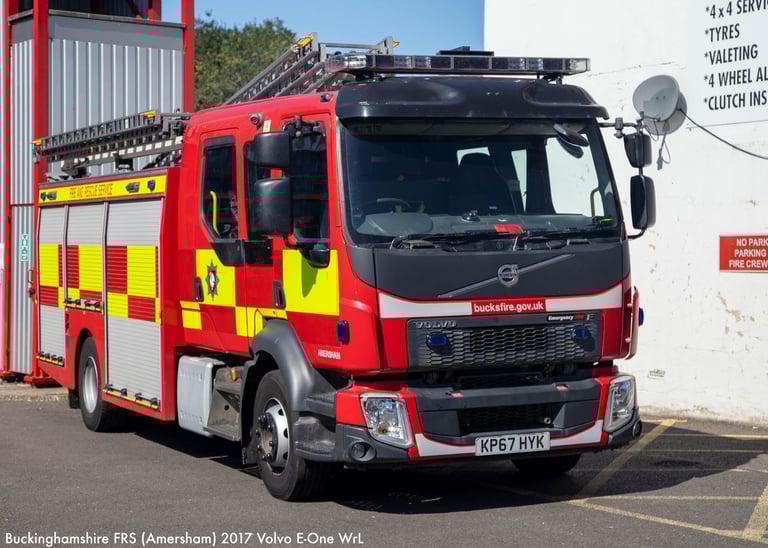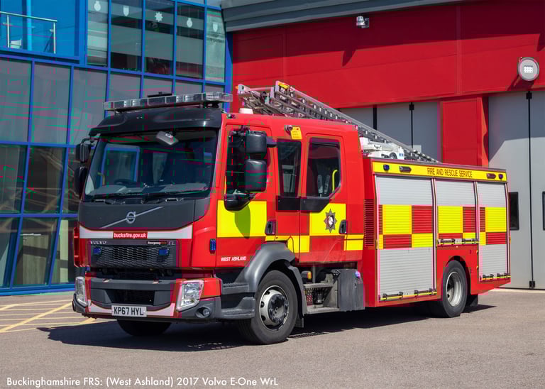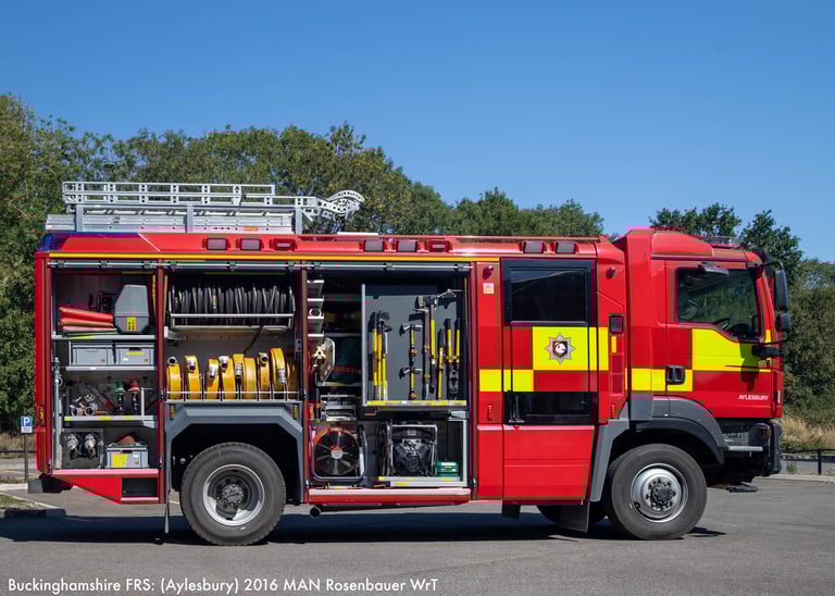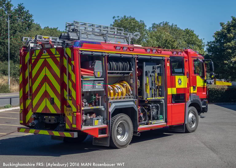 The UK's most common fire engine is the general-purpose pumping appliance, with over 2600 in daily frontline service. These vehicles have various designations, including Water Tender Ladder (WrL), Water Tender (WrT), Pump Ladder (PL), Pump (P), and Rescue Pump (RP). In the past, Pumps and Water Tenders were distinguished by the amount of water they carried (1800 litres to be classified as a Water Tender, less for a Pump), but now these terms are used interchangeably. Modern pumping appliances are built on commercial truck bodies from manufacturers like Volvo, Scania, Mercedes, and Iveco, with bodywork added by specialists such as Angloco, Emergency One, WH Bence, or Rosenbauer.