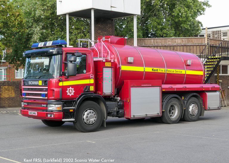 Water Carriers (WrC), also known as Water Tenders, are specialised support vehicles that transport large amounts of water to incidents where mains water supplies or natural sources are unavailable. They usually carry between 9,000 litres and 16,000 litres ( a frontline pump typically holds about 1800 litres), although smaller, trailer-based water bowsers are also employed to reach remote locations. Foam Tenders operate similarly, but they carry large volumes of foam to incidents. holds about 1,800 litres), although smaller, trailer-based water bowsers are also used to access remote locations. Foam Tenders are similar in operation, only they carry large volumes of foam to incidents.