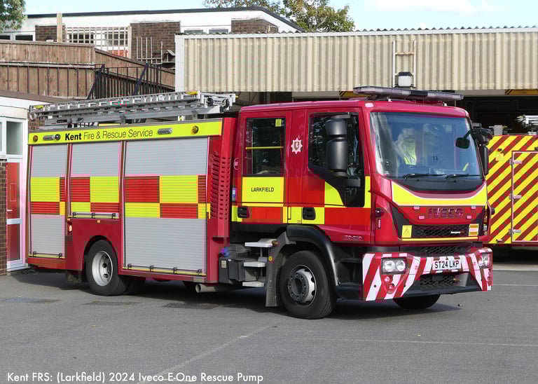 The UK's most common fire engine is the general-purpose pumping appliance, with over 2600 in daily frontline service. These vehicles have various designations, including Water Tender Ladder (WrL), Water Tender (WrT), Pump Ladder (PL), Pump (P), and Rescue Pump (RP). In the past, Pumps and Water Tenders were distinguished by the amount of water they carried (1800 litres to be classified as a Water Tender, less for a Pump), but now these terms are used interchangeably. Modern pumping appliances are built on commercial truck bodies from manufacturers like Volvo, Scania, Mercedes, and Iveco, with bodywork added by specialists such as Angloco, Emergency One, WH Bence, or Rosenbauer.